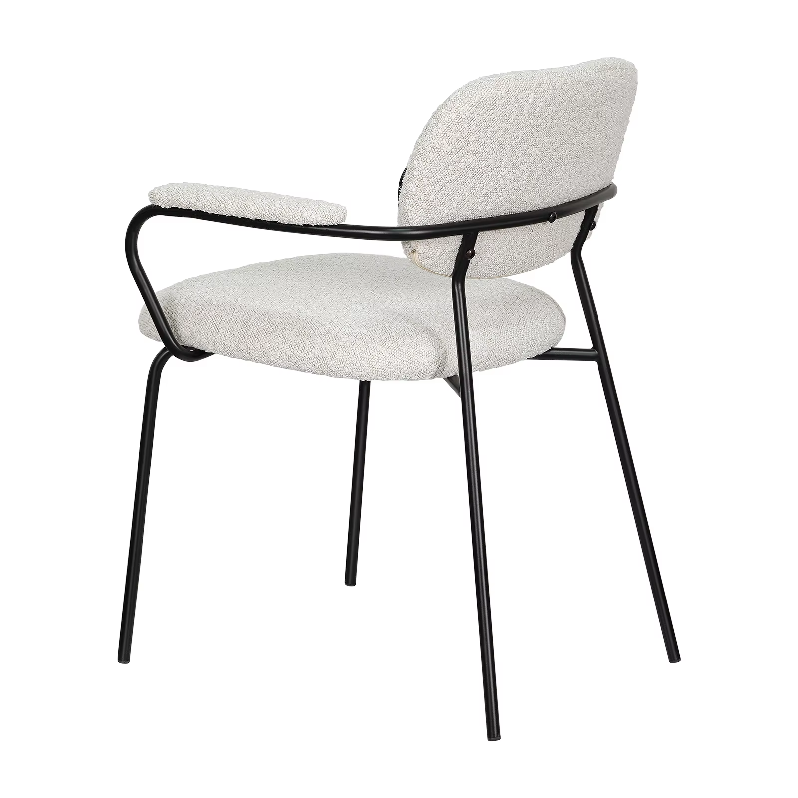 This Modern Velvet Dining Chair combines Nordic and French design influences for a sophisticated look. Upholstered in black boucle fabric, it offers a soft, textured feel that elevates any dining or living space. The wooden armrests provide sturdy support while adding a natural warmth to the piece. Its folded design makes it versatile for bedrooms, living rooms, or dining areas, seamlessly blending comfort with style in a contemporary home setting.